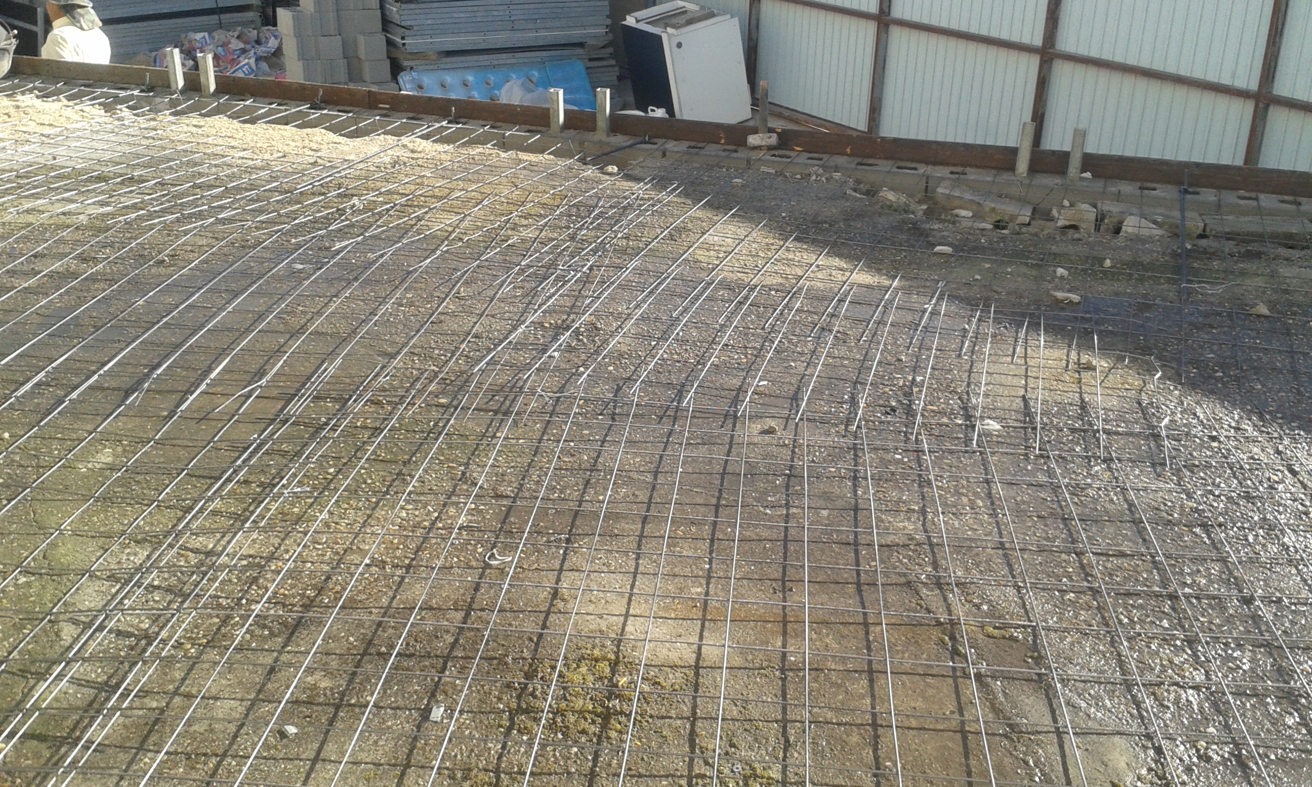 Înainte de turnarea betonului pe terenul pregătit, la suprafață se așează o plasă metalică. Această plasă este formată dintr-o plasă de oțel a cărei funcție principală este de a arma betonul și de a distribui uniform sarcinile.